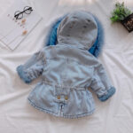 Cette parka en denim pour bébé, teintée d’un bleu classique, est équipée d’une capuche ornée de fausse fourrure, combinant robustesse et douceur. Elle offre une protection optimale contre le froid tout en restant à la mode, parfaite pour les sorties en famille durant les mois d’hiver.
