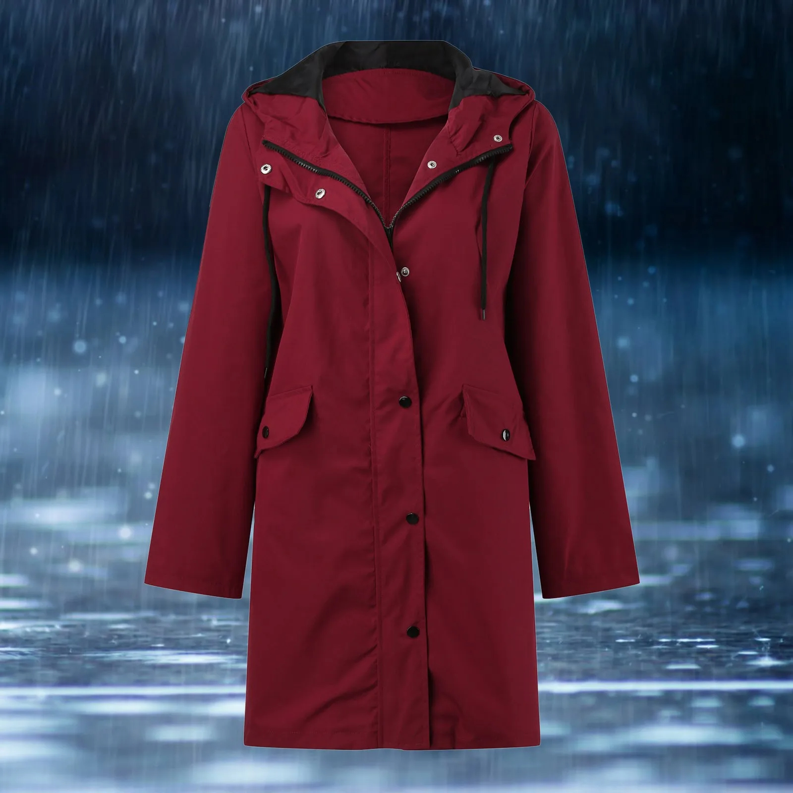 Parka capuche femme imperméable et coupe-vent à boutons