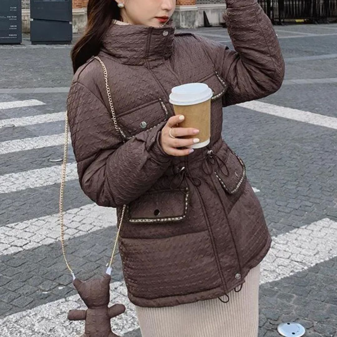 Le design moderne et la couleur marron de cette parka en font un choix idéal pour un look urbain et tendance. Sa polyvalence permet de la combiner facilement avec différents styles, des jeans décontractés aux jupes plus élégantes, rendant cette parka un incontournable de la garde-robe.