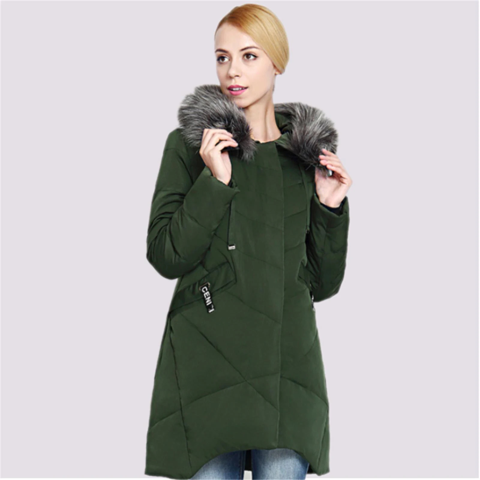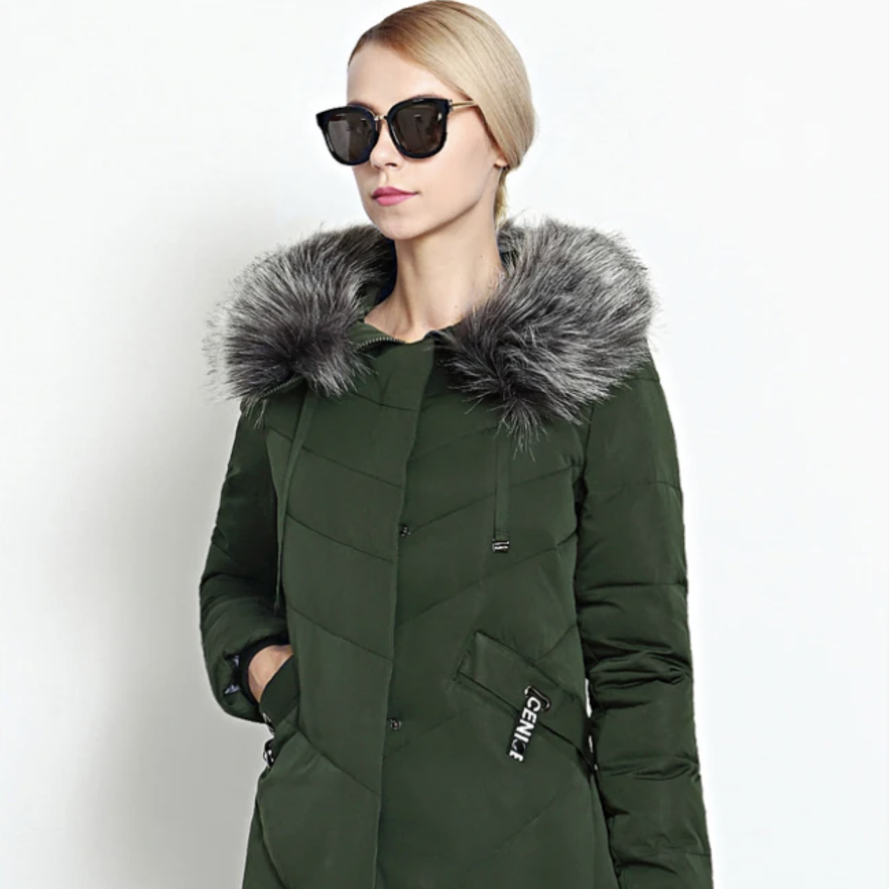 Notre parka en duvet pour femme, d’un vert profond, allie élégance et fonctionnalité. Dotée d’une capuche ornée de fausse fourrure et d’un grand col montant, elle offre une protection optimale contre le froid. Le design matelassé, en plus de son aspect esthétique, contribue à une meilleure isolation.