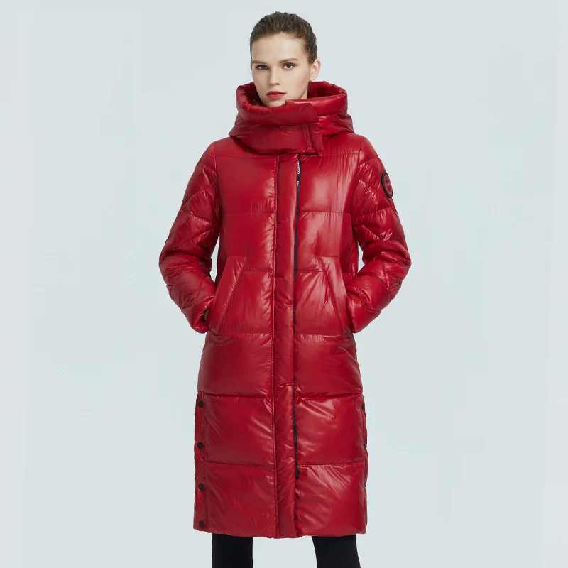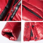 L'intérieur de la parka rouge et matelassée pour femme est équipé d'une doublure douce, conçue pour fournir une isolation thermique maximale. Le col haut renforce la protection contre le froid, tandis que la grande capuche offre une couverture supplémentaire et une touche de sophistication. La coupe longue de la parka assure une chaleur étendue, parfaite pour les journées froides d'hiver.