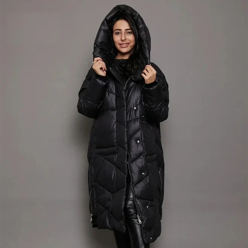 Parka matelassée femme conception longue et épaisse avec capuche