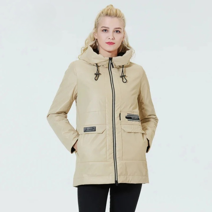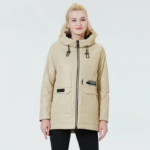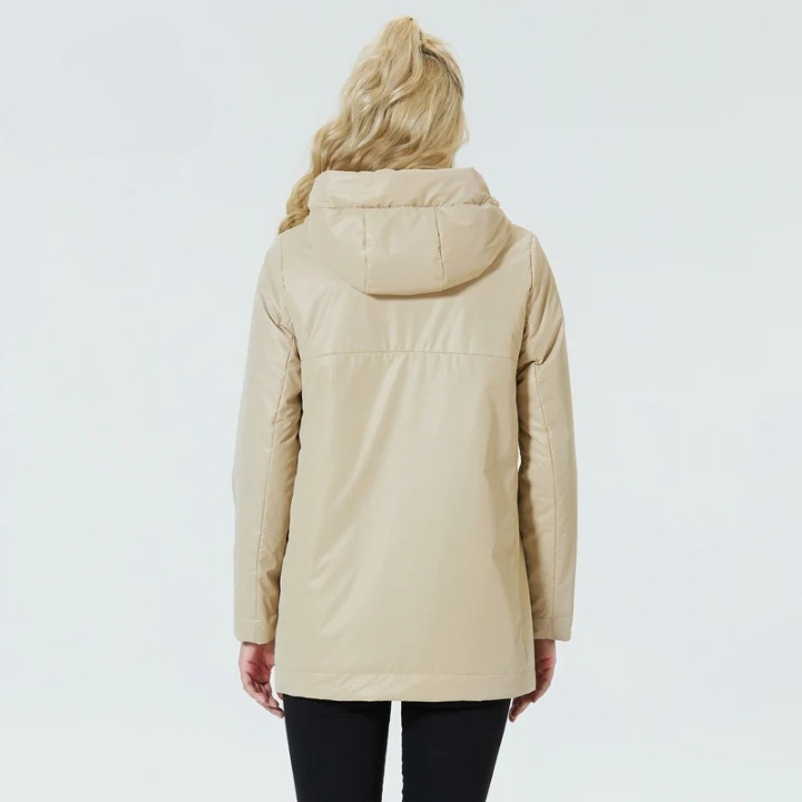 La parka femme imperméable avec capuche de couleur beige combine élégance et fonctionnalité. Ce vêtement est idéal pour ceux qui cherchent à allier style et protection contre les intempéries. Sa couleur beige neutre s’adapte à tous les styles et saura se marier à merveille avec votre garde-robe.
