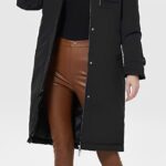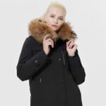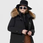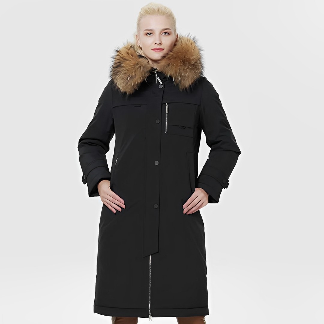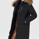 Parka fourrure femme longue noire avec capuche épaisse et chaude