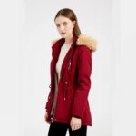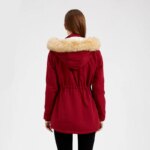 La parka en fourrure pour femme, de couleur rouge éclatante avec une capuche épaisse, offre un style vibrant et confortable. Sa teinte rouge audacieuse, qui apporte une touche de chaleur et de dynamisme, et par sa capuche épaisse qui offre une protection supplémentaire contre le froid.