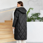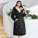 La parka hiver femme noire et matelassée avec ceinture allie élégance et fonctionnalité avec brio. Son design noir intemporel et sa finition matelassée vous garantissent un look chic et soigné au quotidien. Elle est parfaite pour braver le froid hivernal avec style.