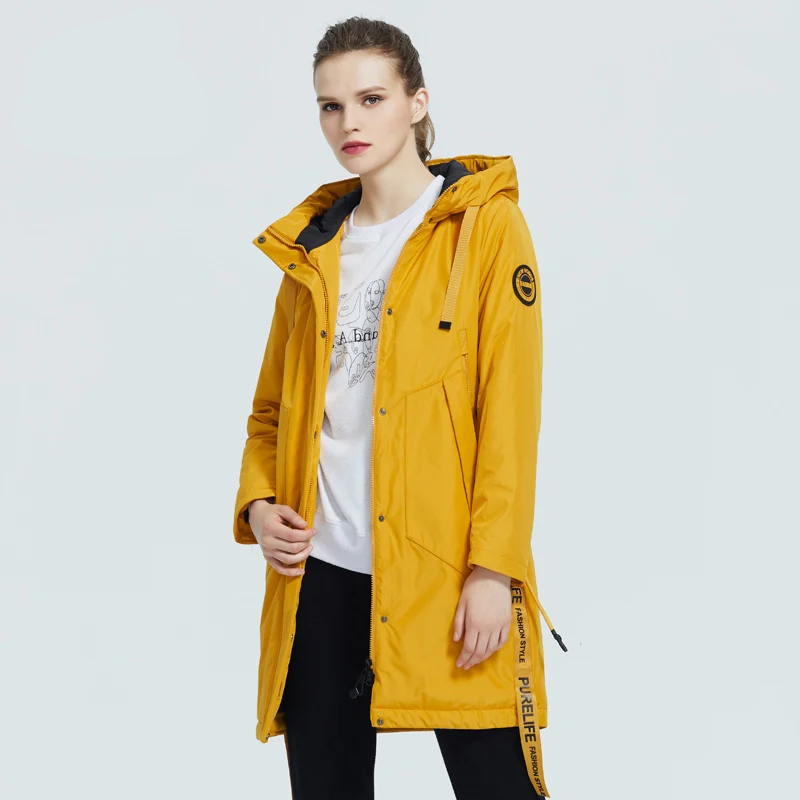Cette parka imperméable longue pour femme, d’une couleur jaune éclatante, est dotée d’une capuche pratique, combinant un style vif et une protection efficace. Idéale pour égayer les jours gris, la teinte jaune apporte une touche de gaieté, tandis que la capuche offre une défense supplémentaire contre le mauvais temps.