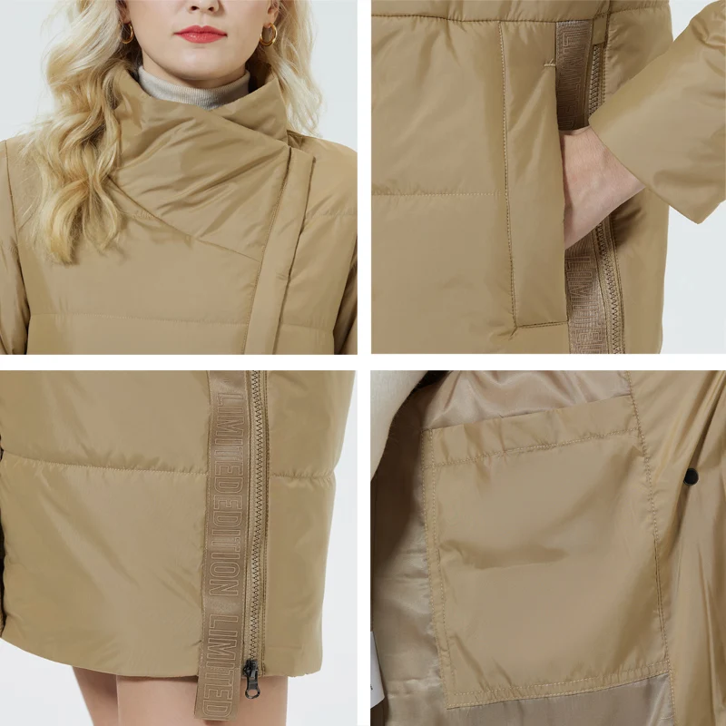 La parka pour femme est conçue pour offrir un confort maximal sans compromettre l'élégance. La doublure intérieure douce assure une chaleur agréable, même dans les conditions les plus froides. La fermeture centrale à zipper, combinée à un boutonnage simple, permet un ajustement facile et rapide. Les deux grandes poches latérales et la poche intérieure offrent suffisamment d'espace pour garder vos essentiels à portée de main, tout en gardant vos mains au chaud.