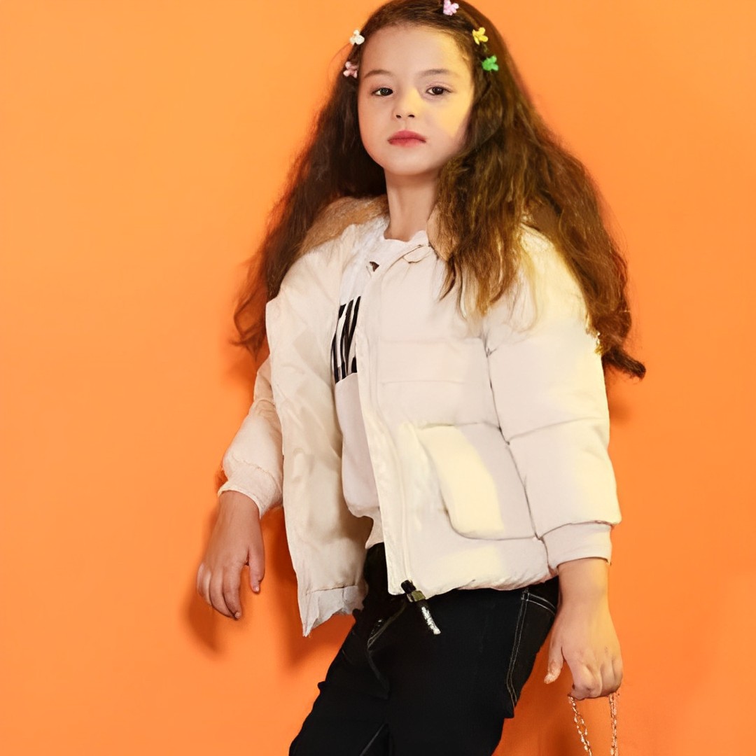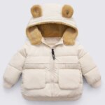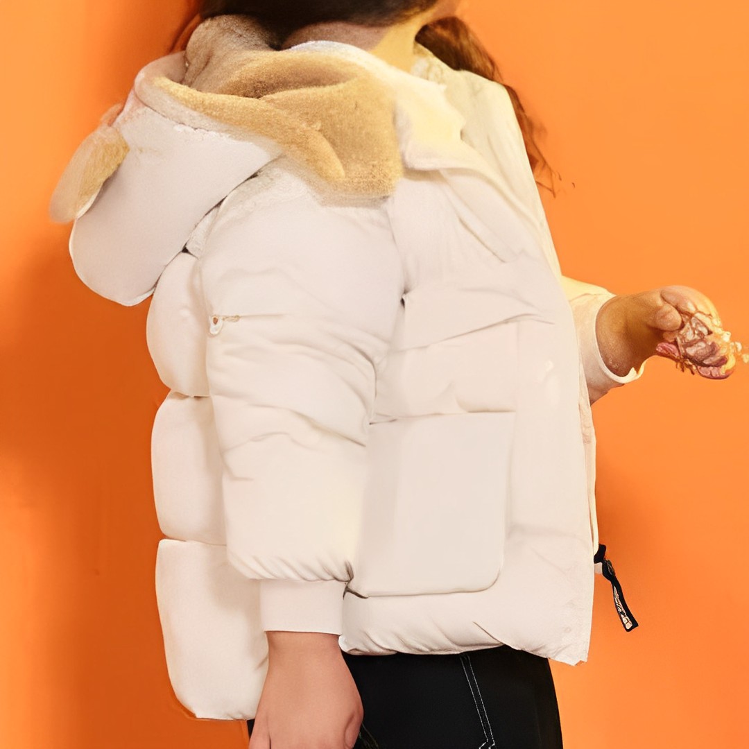 Cette parka fille blanche épaisse, ornée d’adorables oreilles d’ourson en molleton, combine parfaitement charme enfantin et confort. Elle se distingue par son design ludique et son coloris blanc pur, apportant une touche de douceur et de fantaisie à la garde-robe hivernale de votre enfant.