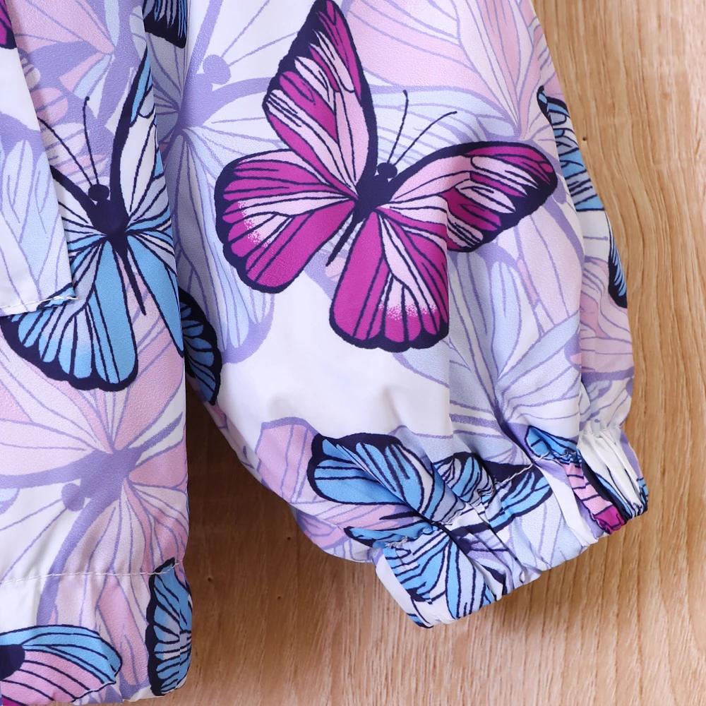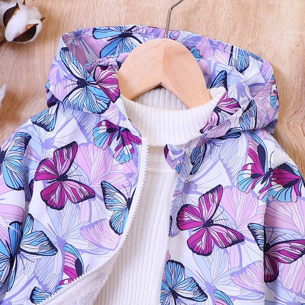 Parka fille violette avec motif papillon