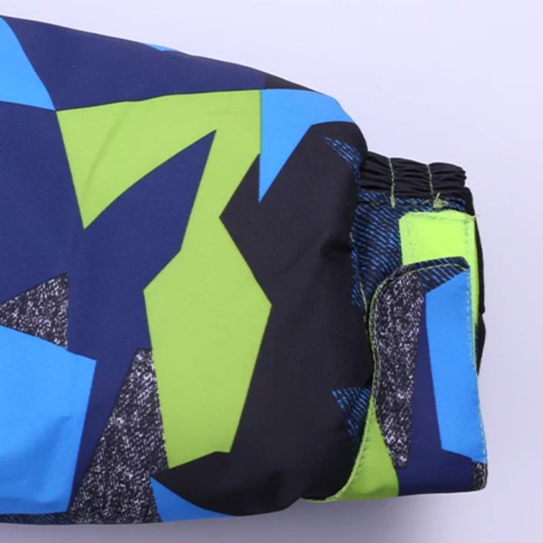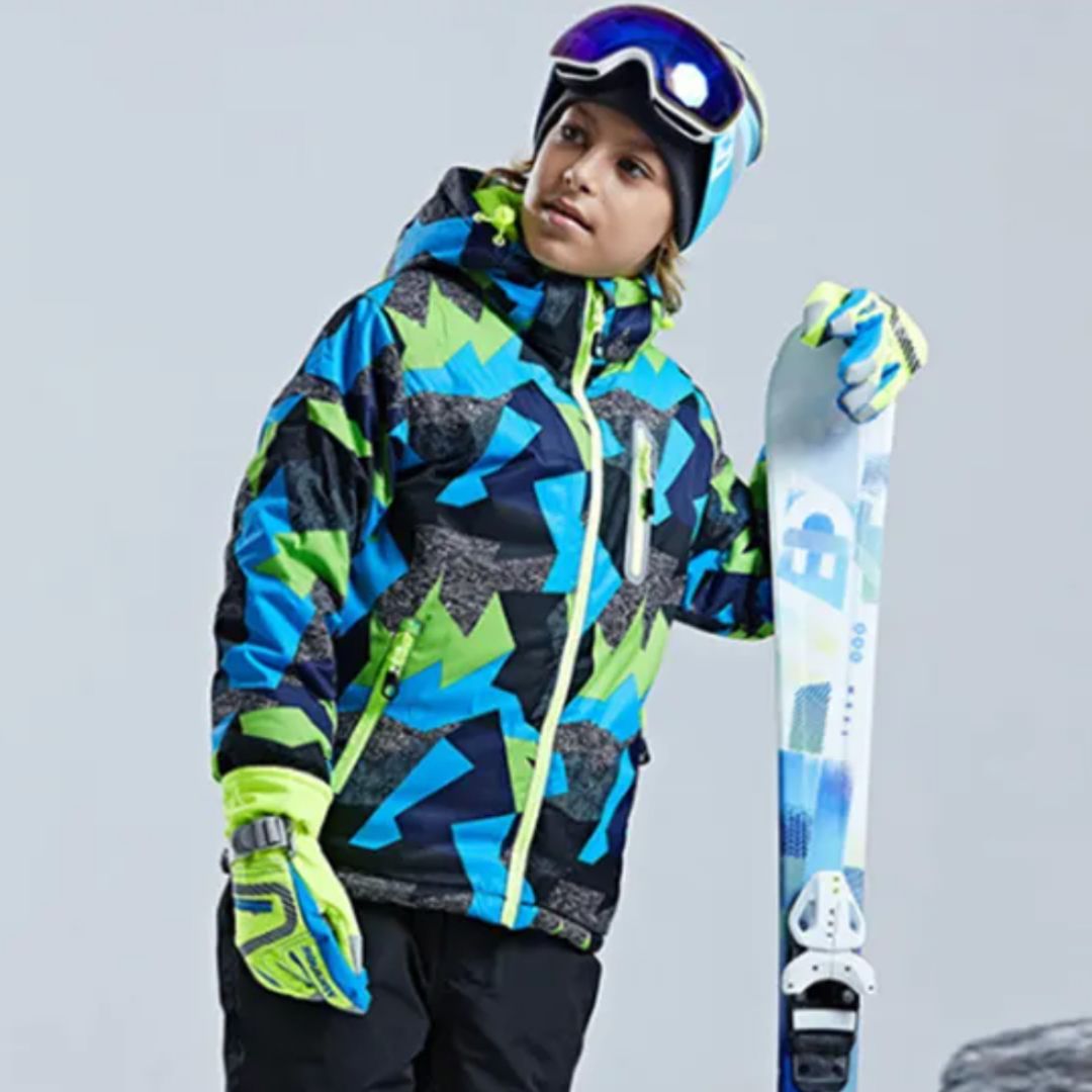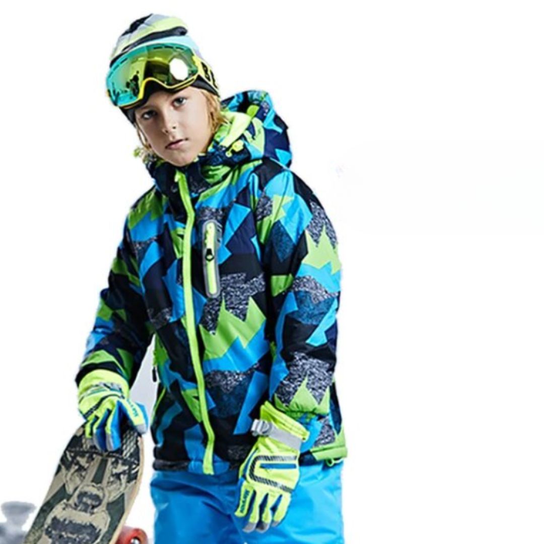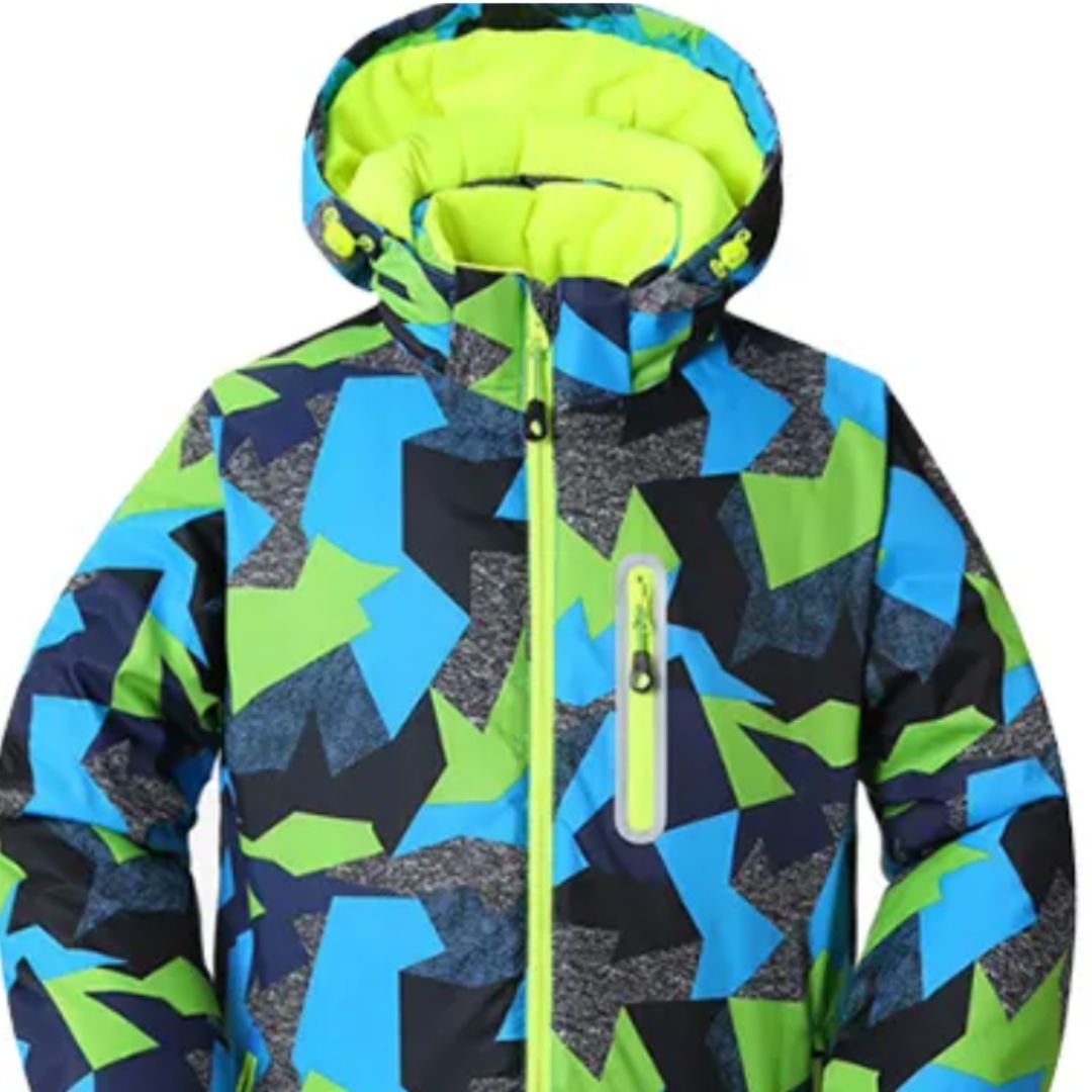 Parka garçon ton bleu et vert idéal pour les sports d’hiver