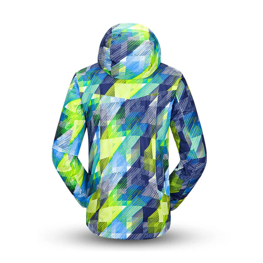 Embrassez l'hiver avec une touche d'originalité grâce à cette parka ski. Son design avec des motifs géométriques verts et bleus offre un style visuellement stimulant, tandis que ses caractéristiques techniques, comme l'imperméabilité et la coupe moderne, garantissent une fonctionnalité à toute épreuve durant vos aventures hivernales.